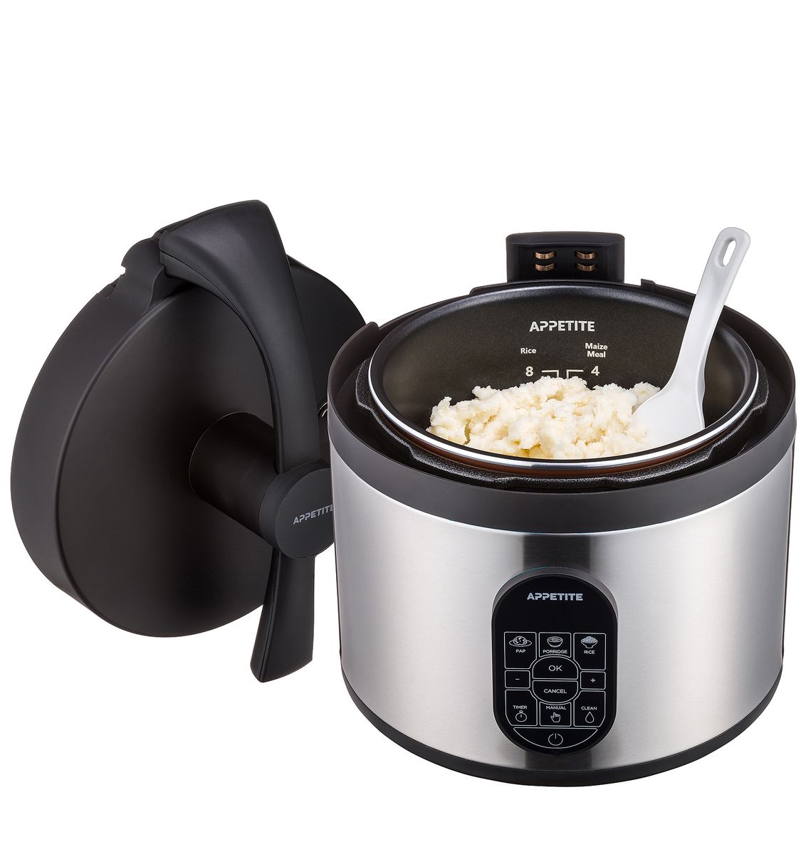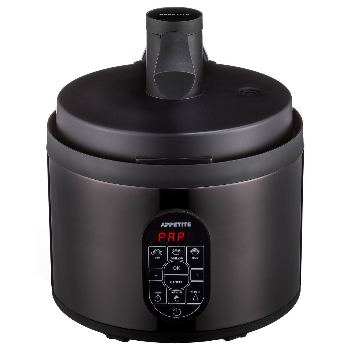 The Appetite Original Automatic Pap Maker Deluxe is the latest evolution in the Appetite Automatic Pap Maker Range. It is a 6-in-1 smart cooker that combines an Automatic Pap Maker, Automatic Porridge Maker, Automatic Rice Cooker, Slow Cooker, Sous Vide, Sauté Pan, Steamer, Sterilizer and Food Warmer into one brilliant appliance.
